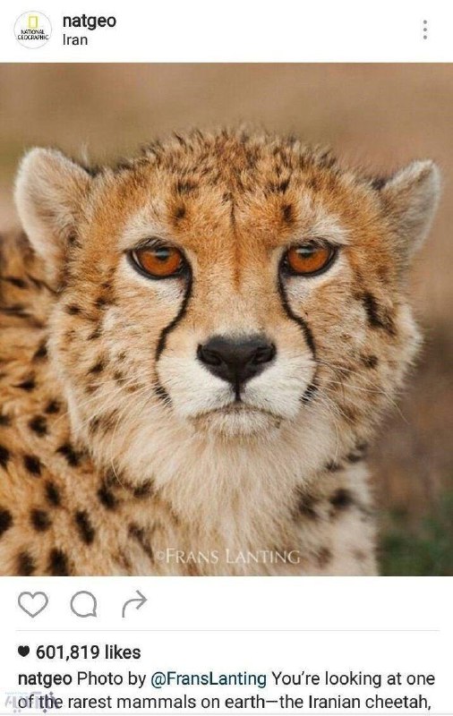 تصویری زیبا از یوزپلنگ ایرانی که نشنالجئوگرافیک منتشر کرد.