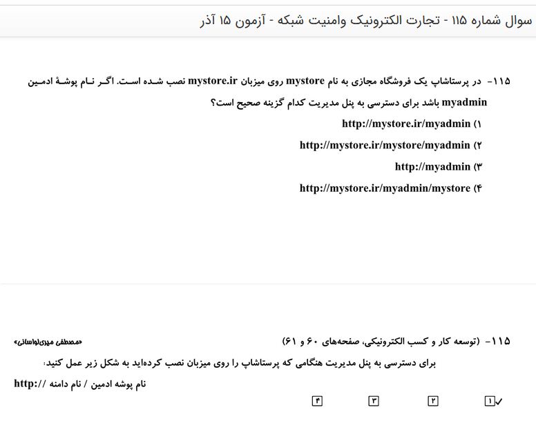 39 درصد دانش آموزان به اشتباه گزینه 2 را انتخاب کرده اند ، اینجا فقط بعد از نام دامنه باید نام پوشه ادمین وارد شود که دانش آموزان به اشتباه نام فروشگاه را هم وارد کرده اند.