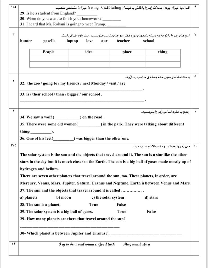 نمونه سوال امتحان زبان انگلیسی دی ماه (1) مهسا بگوند_مسئول درس