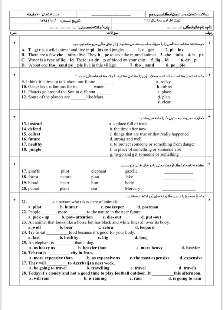 نمونه سوال امتحان زبان انگلیسی دی ماه (1)