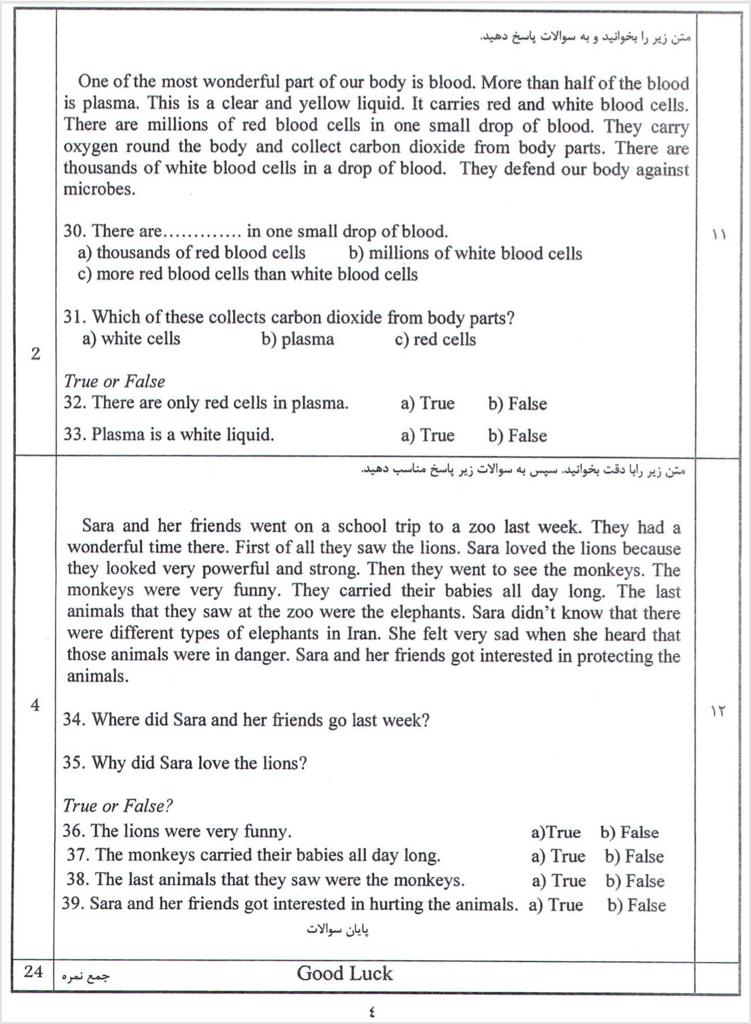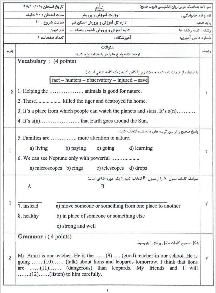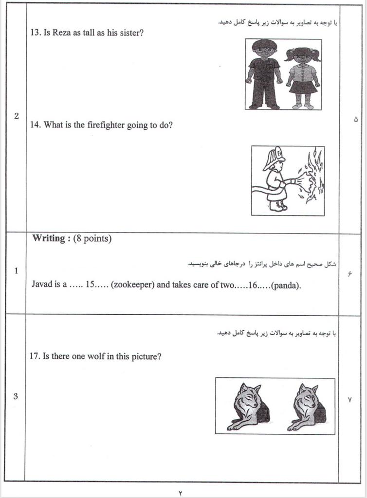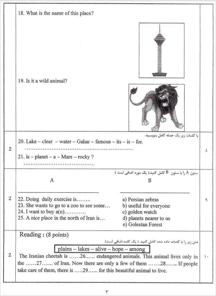 نمونه سوال امتحان زبان انگلیسی دی ماه (2)