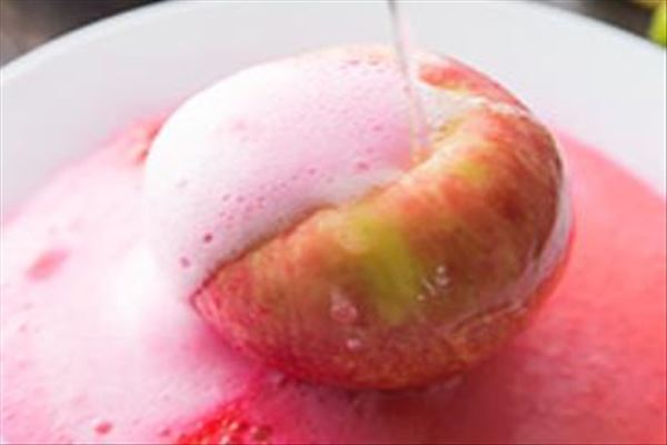 در یکی از سیبها اول جوش شیرین را اضافه کنید و بعد سرکه را بر روی آن بریزید، در سیب دیگر ابتدا سرکه را بریزید و بعد جوش شیرین اضافه کنید.