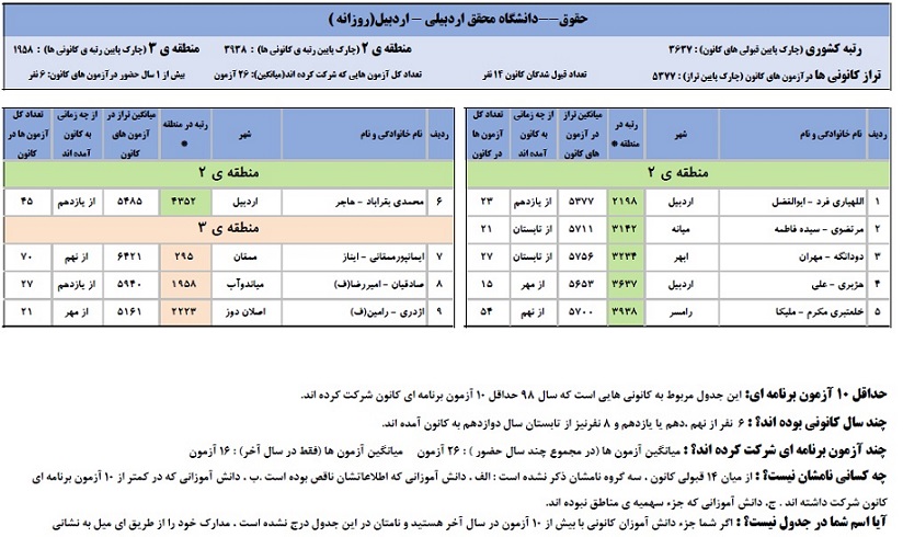 یادگار ماندگار : قبولی های کانونی دانشگاه محقق اردبیلی اردبیل در همه رشته ها در سال 98 را در ادامه مشاهده کنید.فایل با کیفیت قبولی های سال 98 را در قسمت فایل های ضمیمه دانلود کنید.