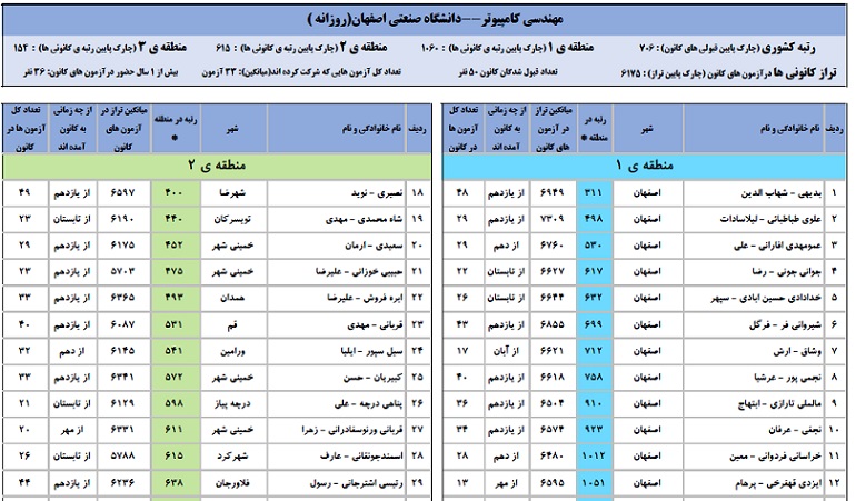 یادگار ماندگار : قبولی های کانونی دانشگاه صنعتی اصفهان در همه رشته ها در سال 98 را در ادامه مشاهده کنید.فایل با کیفیت قبولی های سال 98 را در قسمت فایل های ضمیمه دانلود کنید.