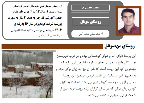 محمد بختیاری: از روستای سوتلق تامهندسی مکانیک همدان