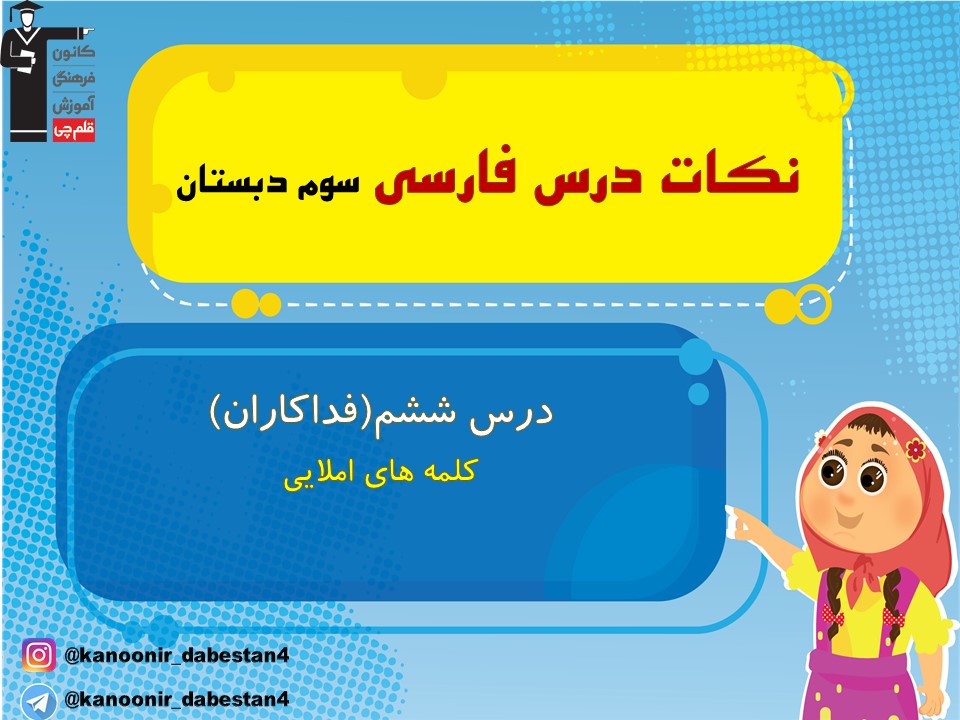 کلمات مهم املایی درس ششم فارسی سوم دبستان(فداکاران)