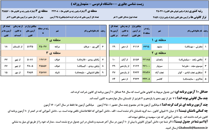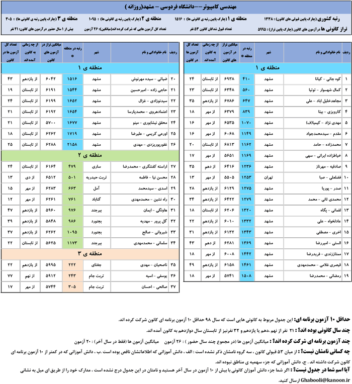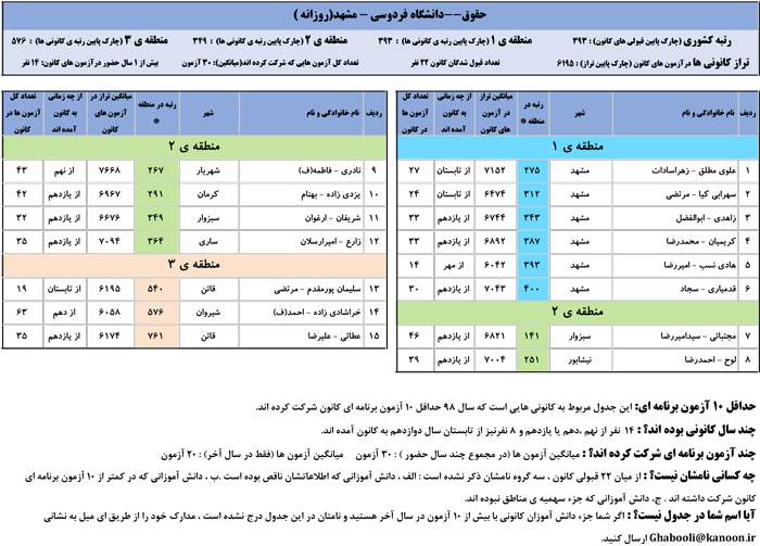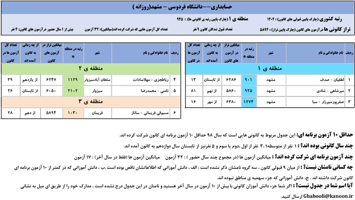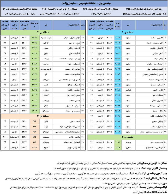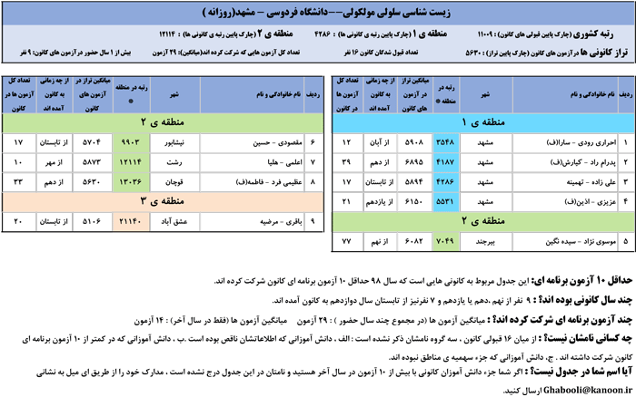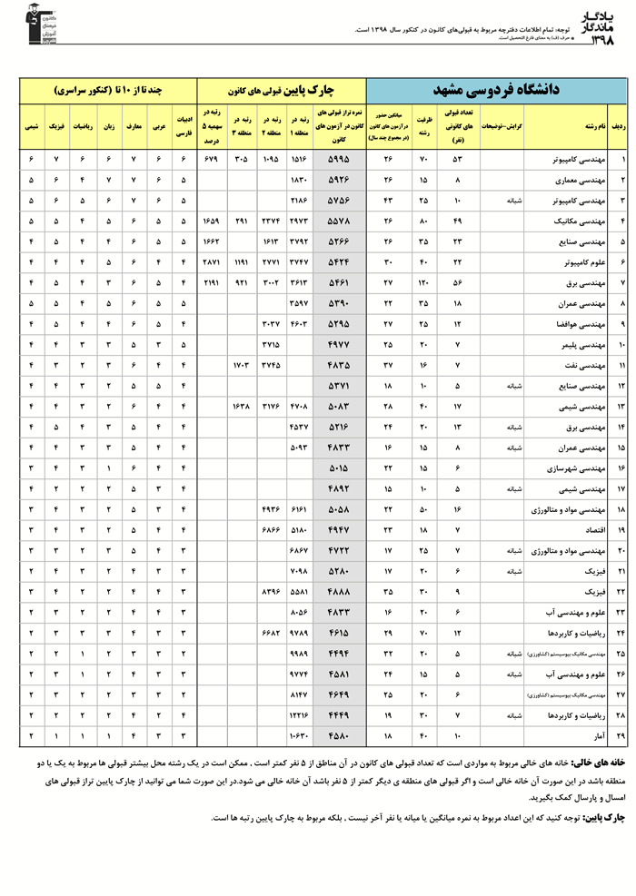 یادگار ماندگار : قبولی های کانونی دانشگاه فردوسی مشهد در همه رشته ها در سال 98 را در ادامه مشاهده کنید.