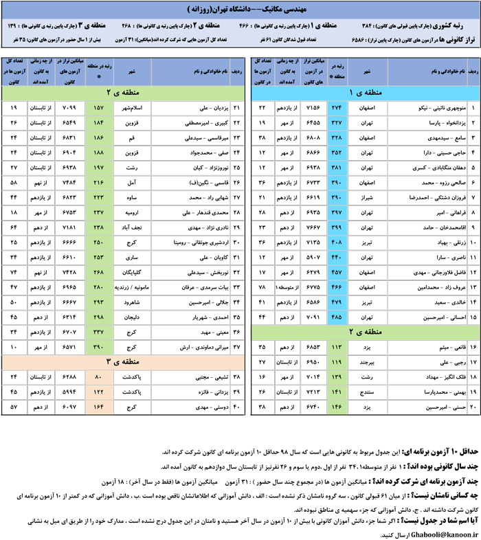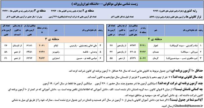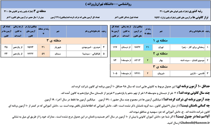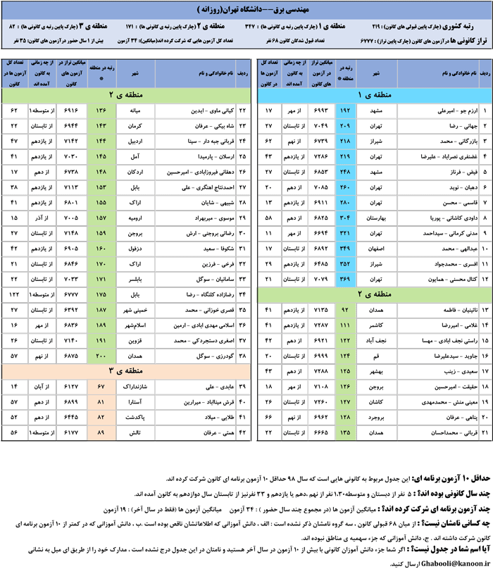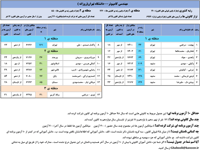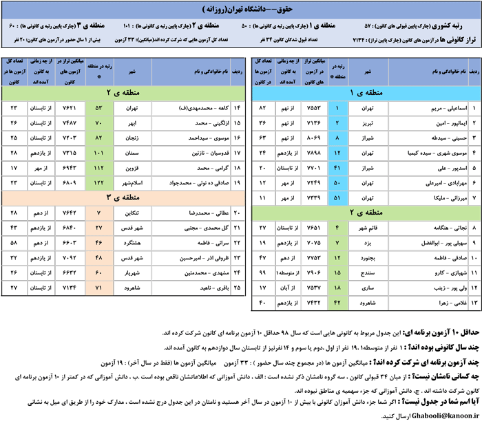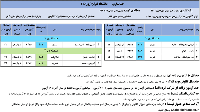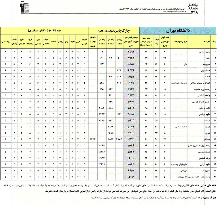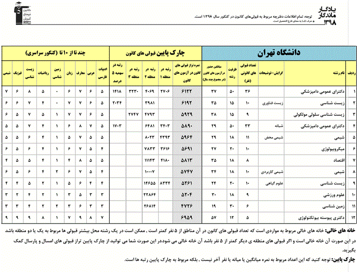 یادگار ماندگار : قبولی های کانونی دانشگاه تهران در همه رشته ها در سال 98 را در ادامه مشاهده کنید.