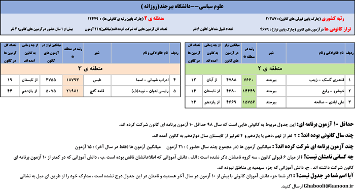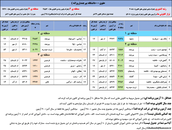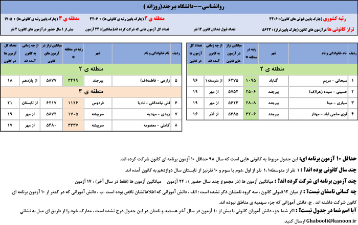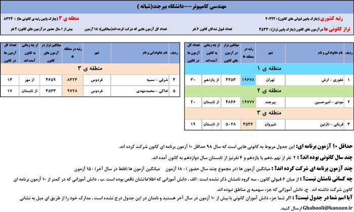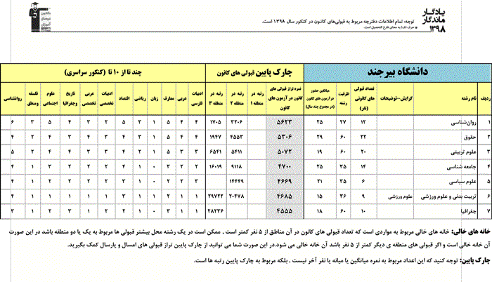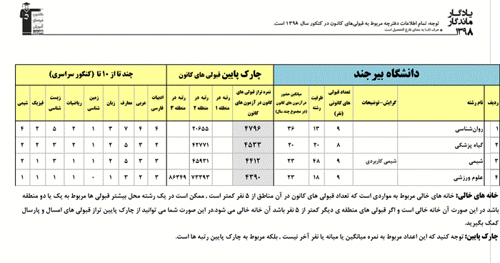 یادگار ماندگار : قبولی های کانونی دانشگاه بیرجند در همه رشته ها در سال 98 را در ادامه مشاهده کنید.فایل با کیفیت قبولی های سال 98 را در قسمت فایل های ضمیمه دانلود کنید.