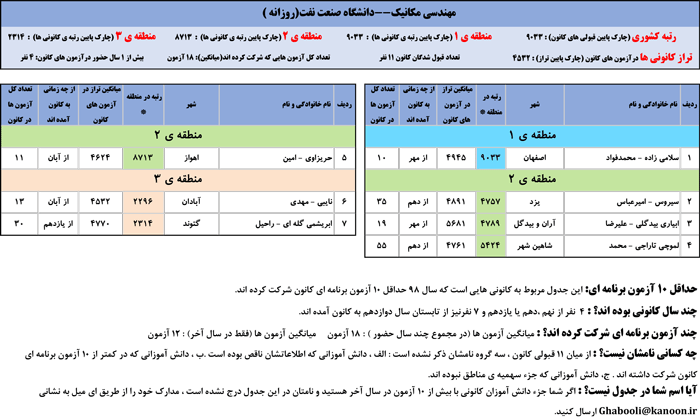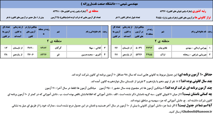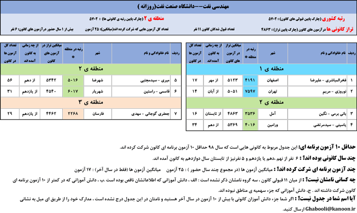 یادگار ماندگار : قبولی های کانونی دانشگاه صنعت نفت اهواز در همه رشته ها در سال 98 را در ادامه مشاهده کنید.فایل با کیفیت قبولی های سال 98 را در قسمت فایل های ضمیمه دانلود کنید.
