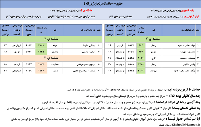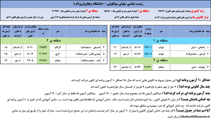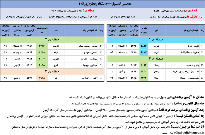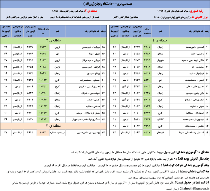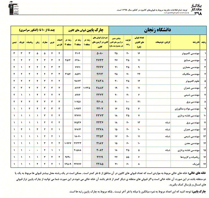 یادگار ماندگار : قبولی های کانونی دانشگاه زنجان در همه رشته ها در سال 98 را در ادامه مشاهده کنید.فایل با کیفیت قبولی های سال 98 را در قسمت فایل های ضمیمه دانلود کنید.