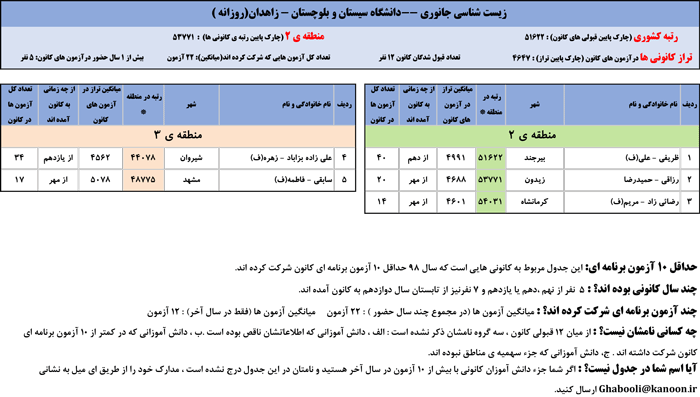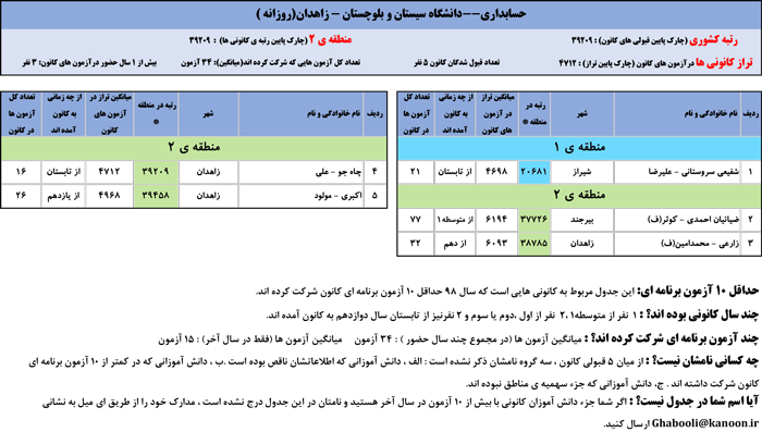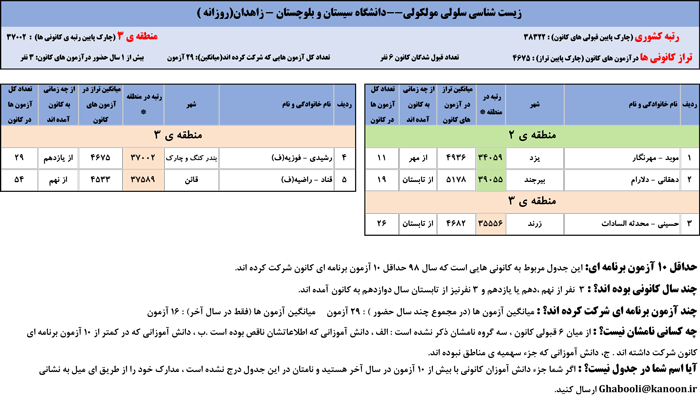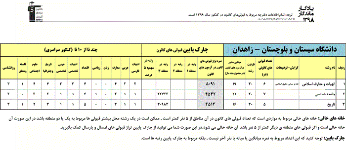 یادگار ماندگار : قبولی های کانونی دانشگاه زاهدان در همه رشته ها در سال 98 را در ادامه مشاهده کنید.فایل با کیفیت قبولی های سال 98 را در قسمت فایل های ضمیمه دانلود کنید.