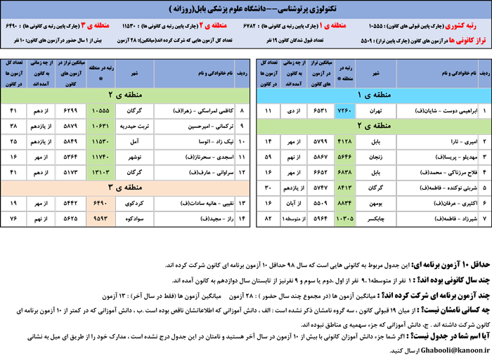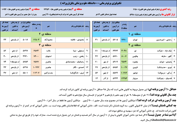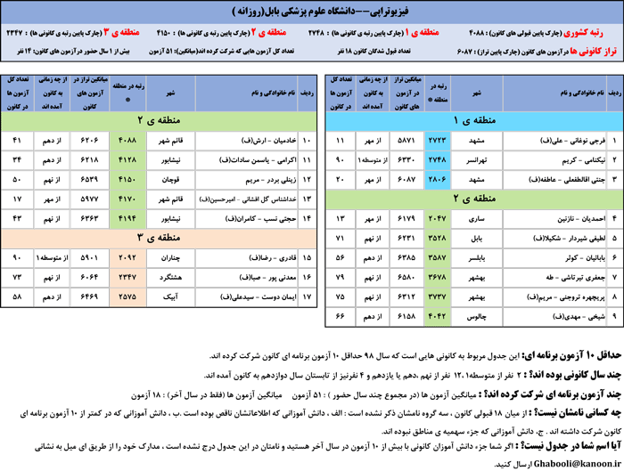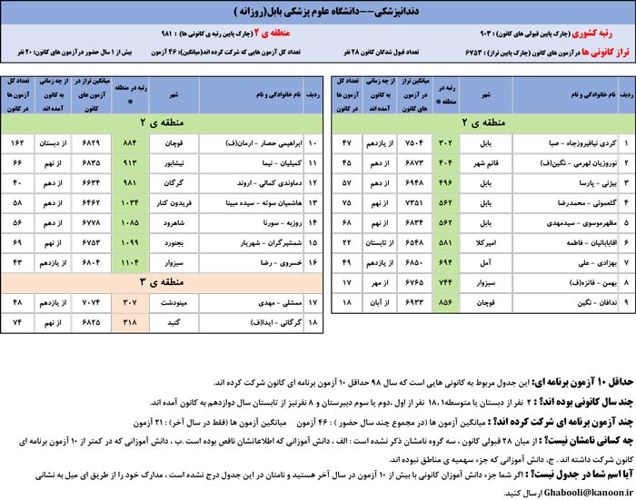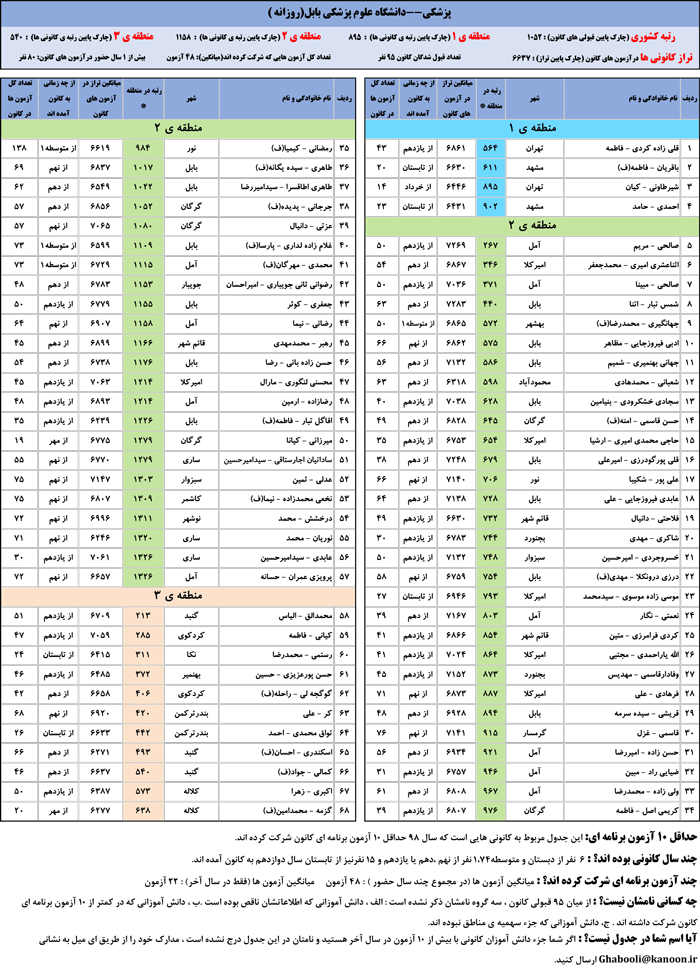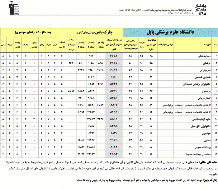 یادگار ماندگار : قبولی های کانونی دانشگاه علوم پزشکی بابل در همه رشته ها در سال 98 را در ادامه مشاهده کنید.فایل با کیفیت قبولی های سال 98 را در قسمت فایل های ضمیمه دانلود کنید.