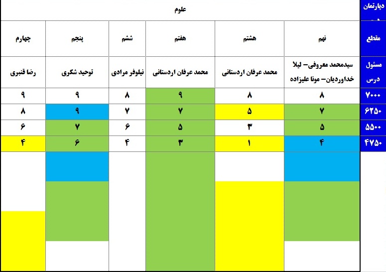 مسئول درس علوم در گروه مستندسازی آزمون: لیدا علیاکبری