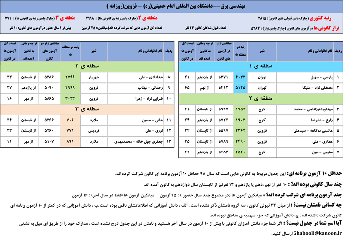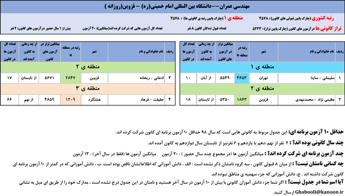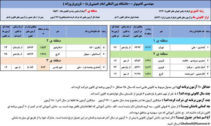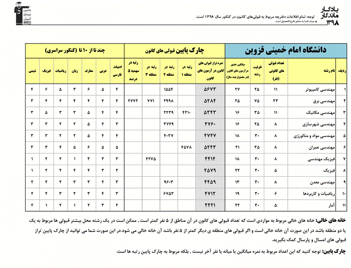 یادگار ماندگار : قبولی های کانونی دانشگاه بین اللملی امام خميني قزوين در همه رشته ها در سال 98 را در ادامه مشاهده کنید.