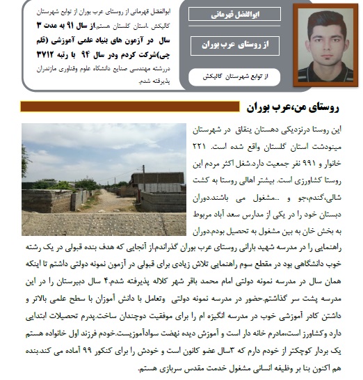 ابوالفضل قهرمانی:از روستای عرب بوران تامهندسی صنایع مازندران