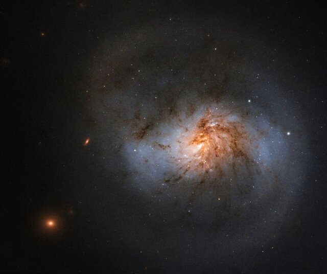 این کهکشان مارپیچی به عنوان بخشی از پروژه مطالعه سیاهچالهها توسط تلسکوپ فضایی "هابل"(Hubble) شکار شده و از غبارهای قرمز رنگ پوشیده شده است.