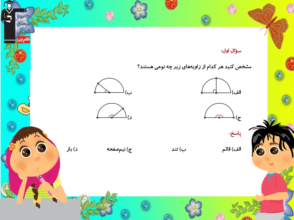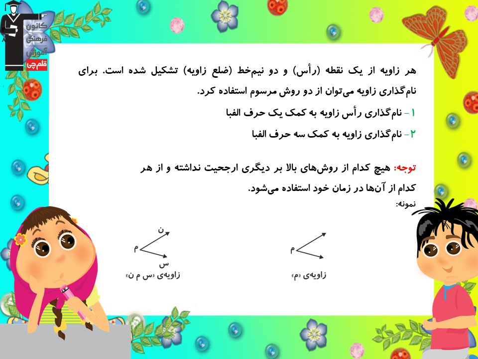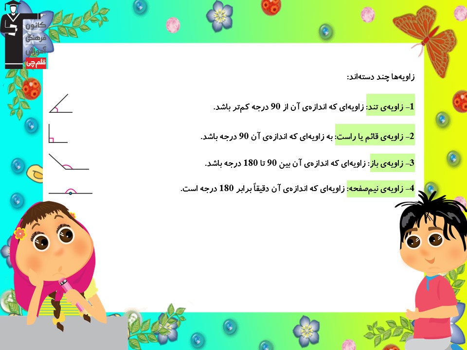 عکس هایی که در ادامه قرار گرفته است، درسنامهی فصل چهارم ریاضی چهارم دبستان (زاویه) میباشد که توسط فاطمه احدزاده دانشجوی رشتهی مهندسی پلیمر دانشگاه تهران تهیه شده است.
