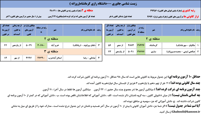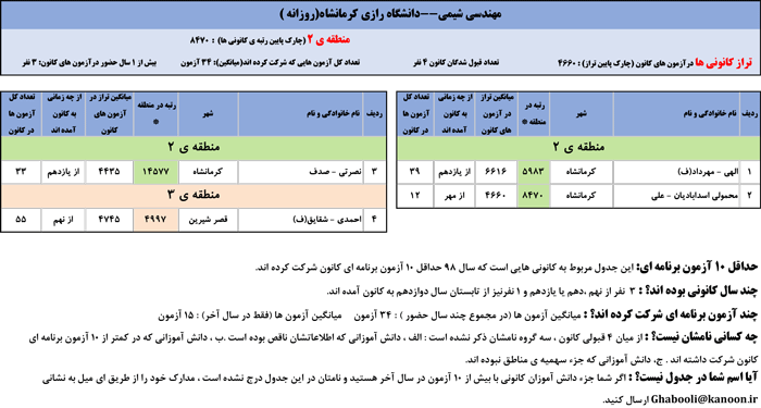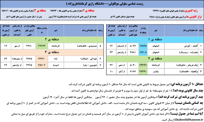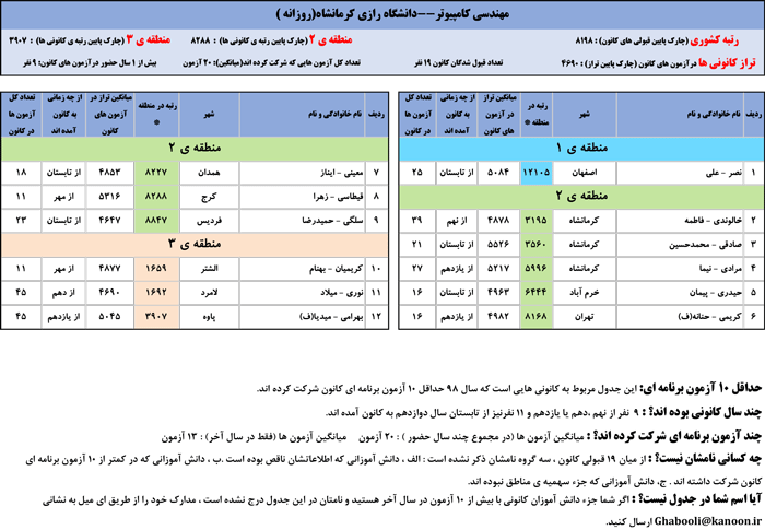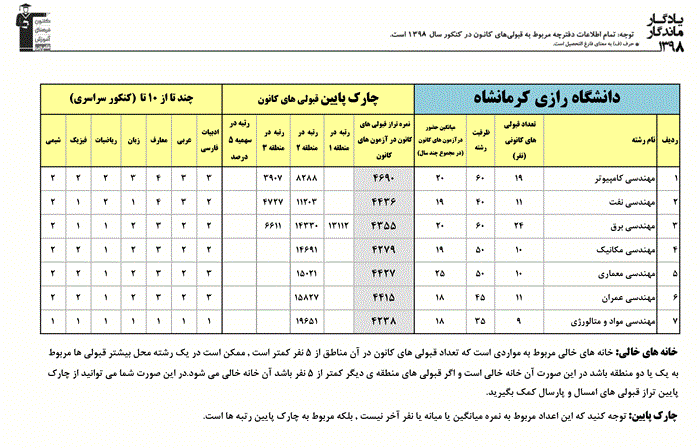 یادگار ماندگار : قبولی های کانونی دانشگاه رازی کرمانشاه در همه رشته ها در سال 98 را در ادامه مشاهده کنید.فایل با کیفیت قبولی های سال 98 را در قسمت فایل های ضمیمه دانلود کنید.