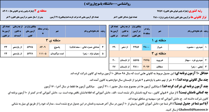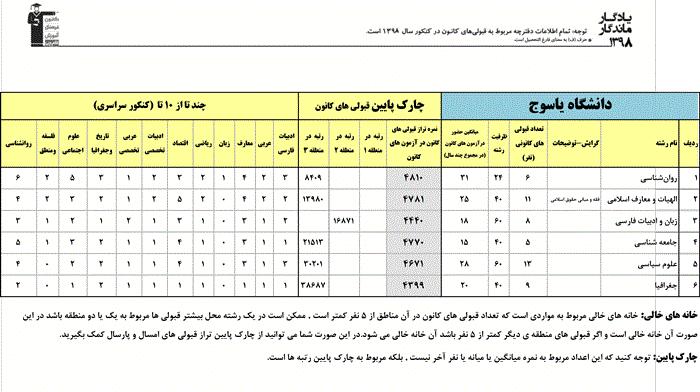 یادگار ماندگار : قبولی های کانونی دانشگاه یاسوج در همه رشته ها در سال 98 را در ادامه مشاهده کنید.فایل با کیفیت قبولی های سال 98 را در قسمت فایل های ضمیمه دانلود کنید.