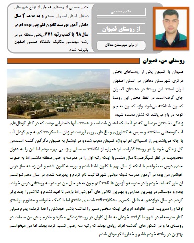 متین مسیبی: از روستای قمبوان تا مهندسی مکانیک اصفهان