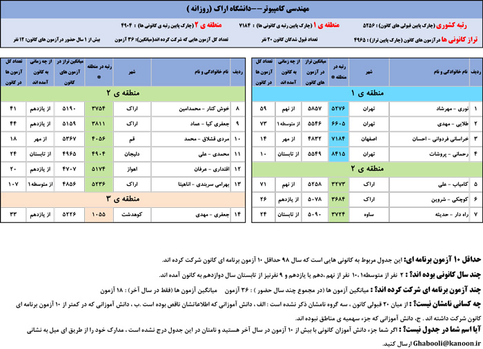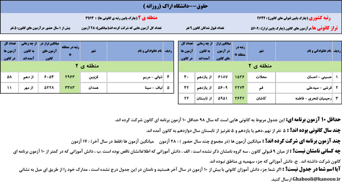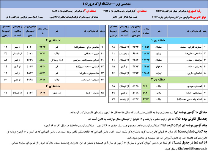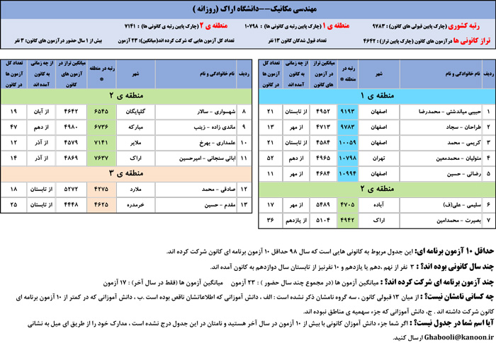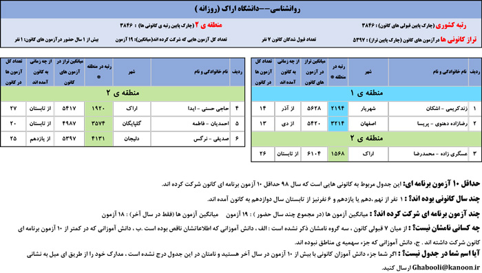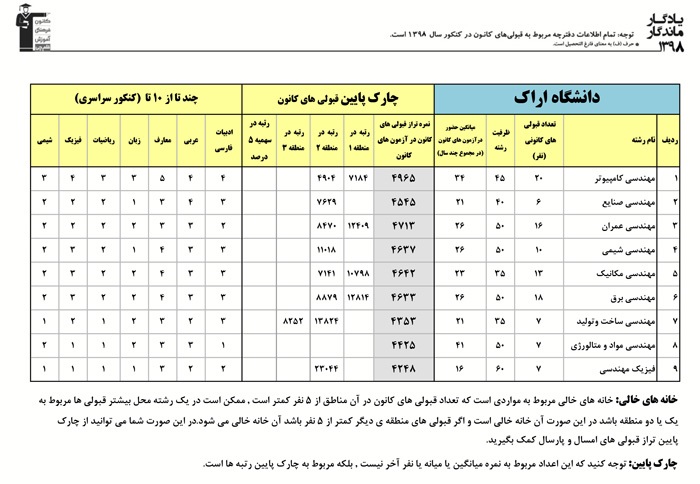 یادگار ماندگار : قبولی های کانونی دانشگاه اراک در همه رشته ها در سال 98 را در ادامه مشاهده کنید.فایل با کیفیت قبولی های سال 98 را در قسمت فایل های ضمیمه دانلود کنید.