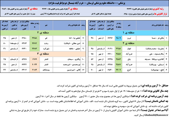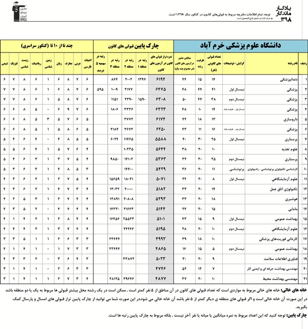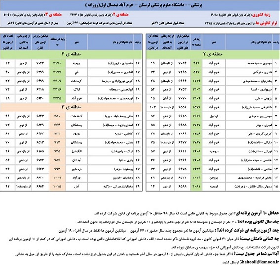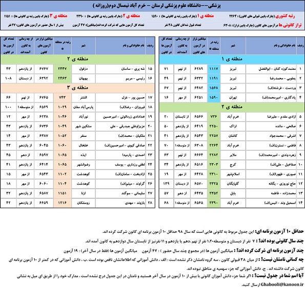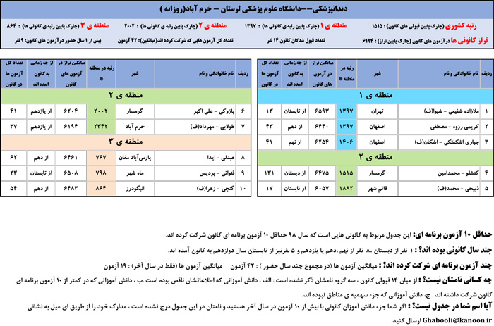 یادگار ماندگار : قبولی های کانونی دانشگاه علوم پزشکی لرستان - خرم آباد در همه رشته ها در سال 98 را در ادامه مشاهده کنید.فایل با کیفیت قبولی های سال 98 را در قسمت فایل های ضمیمه دانلود کنید.
