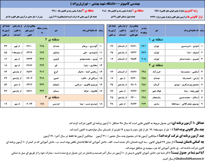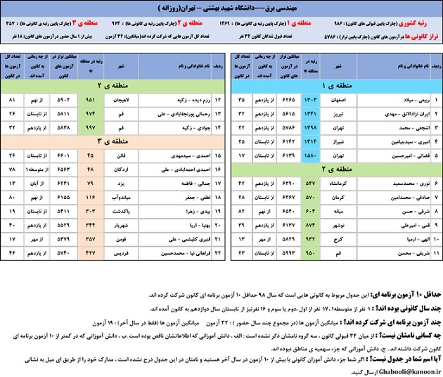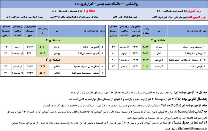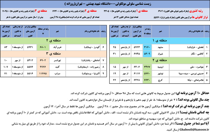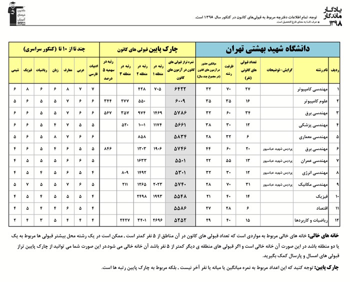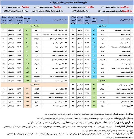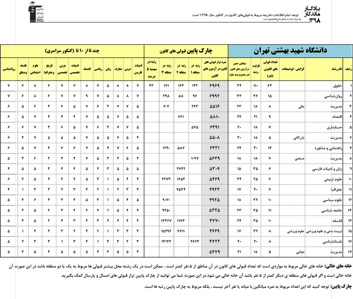 یادگار ماندگار : قبولی های کانونی دانشگاه شهید بهشتی تهران در همه رشته ها در سال 98 را در ادامه مشاهده کنید.فایل با کیفیت قبولی های سال 98 را در قسمت فایل های ضمیمه دانلود کنید.