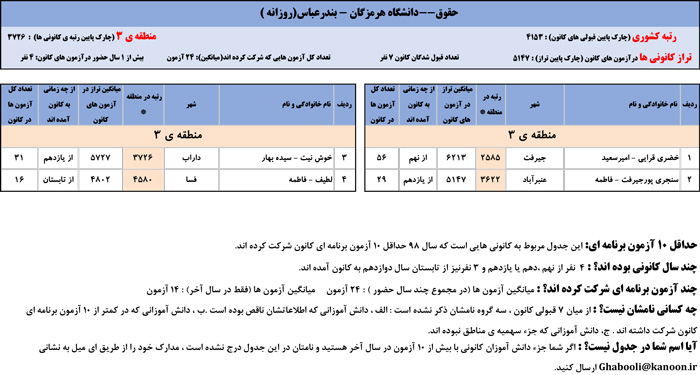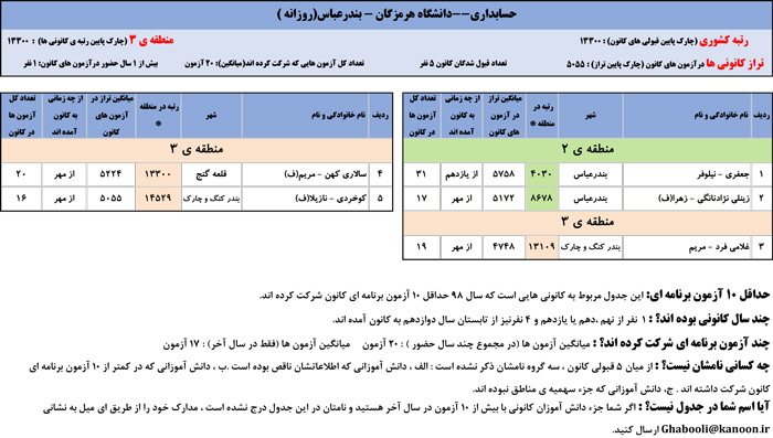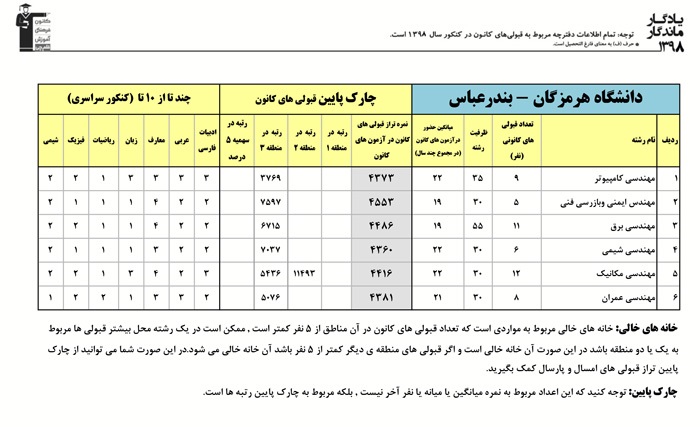 یادگار ماندگار : قبولی های کانونی دانشگاه هرمزگان - بندرعباس در همه رشته ها در سال 98 را در ادامه مشاهده کنید.فایل با کیفیت قبولی های سال 98 را در قسمت فایل های ضمیمه دانلود کنید.