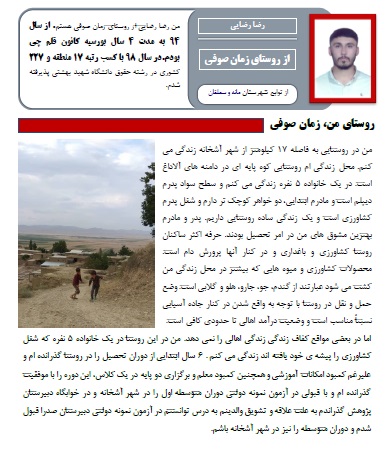 من رضا رضایی از روستای زمان صوفی هستم. از سال