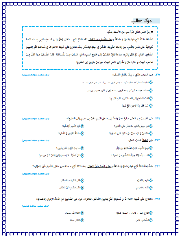 نمونه سوال درک مطلب عربی پایه دهم متوسطه دوم مطابق با آزمون 25 بهمن