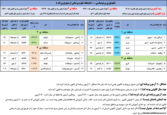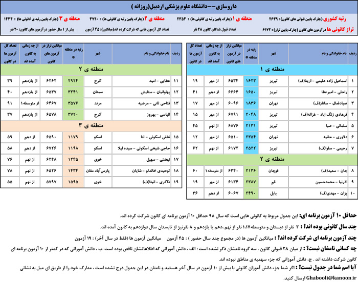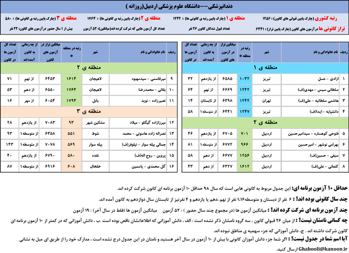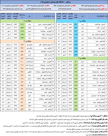 یادگار ماندگار : قبولی های کانونی دانشگاه علوم پزشکی اردبیل در همه رشته ها در سال 98 را در ادامه مشاهده کنید.فایل با کیفیت قبولی های سال 98 را در قسمت فایل های ضمیمه دانلود کنید.