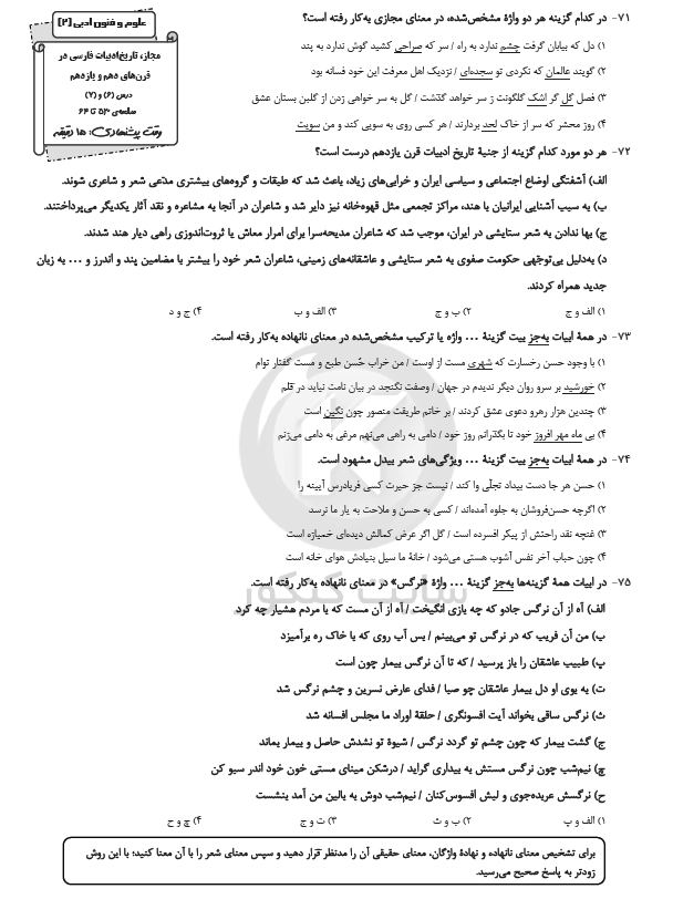 در این مطلب نمونه سوال علوم و فنون ادبی 2 توسط عاطفه شهنهاد دانشجوی حقوق دانشگاه تهران انتخاب شده است. جهت مشاهده به فایل ضمیمه مراجعه نمایید.