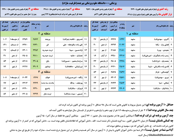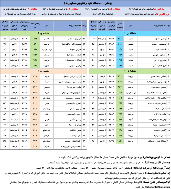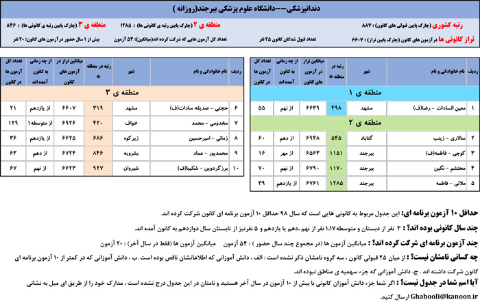یادگار ماندگار : قبولی های کانونی دانشگاه علوم پزشکی بیرجند در همه رشته ها در سال 98 را در ادامه مشاهده کنید.فایل با کیفیت قبولی های سال 98 را در قسمت فایل های ضمیمه دانلود کنید.