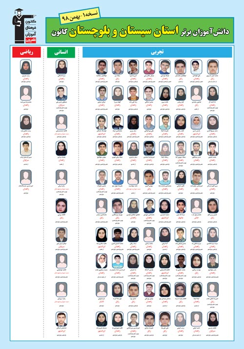 ویژه نامه ی برترها که شامل دانش آموزان برتر کنکوری سال 99 کانون در استان سیستان و بلوچستان است را در ادامه مشاهده و دانلود کنید.فایل با کیفیت را در قسمت فایل های ضمیمه دانلود کنید.