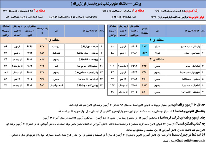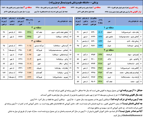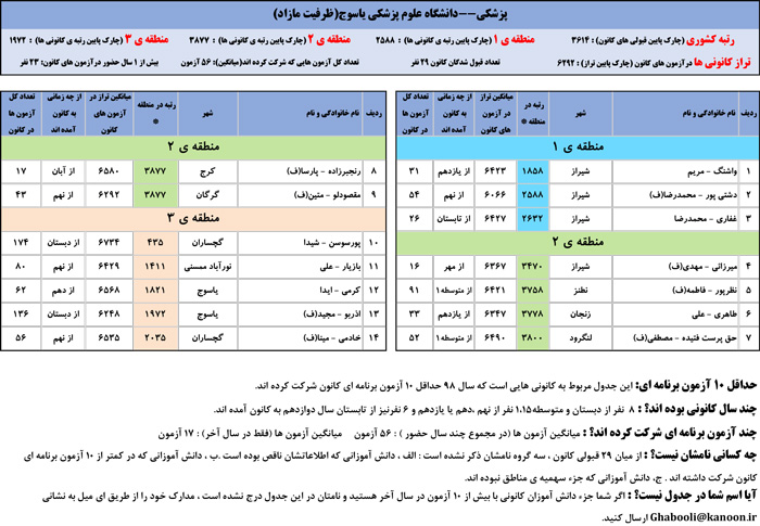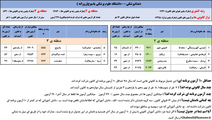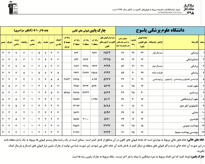 یادگار ماندگار : قبولی های کانونی دانشگاه علوم پزشکی یاسوج در همه رشته ها در سال 98 را در ادامه مشاهده کنید.فایل با کیفیت قبولی های سال 98 را در قسمت فایل های ضمیمه دانلود کنید.