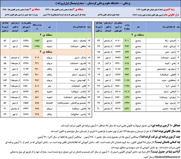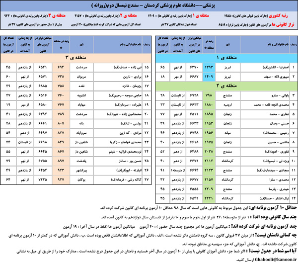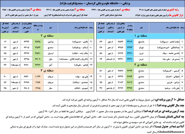 یادگار ماندگار : قبولی های کانونی دانشگاه علوم پزشکی کردستان - سنندج در همه رشته ها در سال 98 را در ادامه مشاهده کنید.فایل با کیفیت قبولی های سال 98 را در قسمت فایل های ضمیمه دانلود کنید.