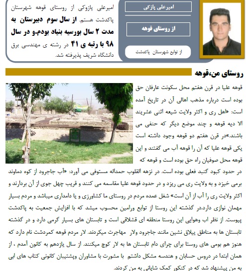 امیرعلی پازوکی از روستای قوهه شهرستان