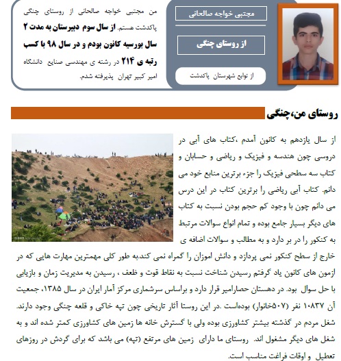 من مجتبی خواجه صالحانی از روستای چنگی