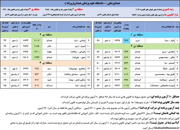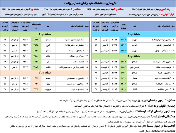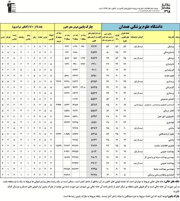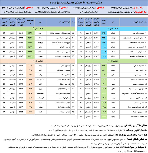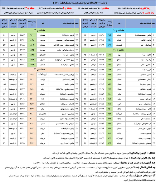 یادگار ماندگار : قبولی های کانونی دانشگاه علوم پزشکی همدان در همه رشته ها در سال 98 را در ادامه مشاهده کنید.فایل با کیفیت قبولی های سال 98 را در قسمت فایل های ضمیمه دانلود کنید.