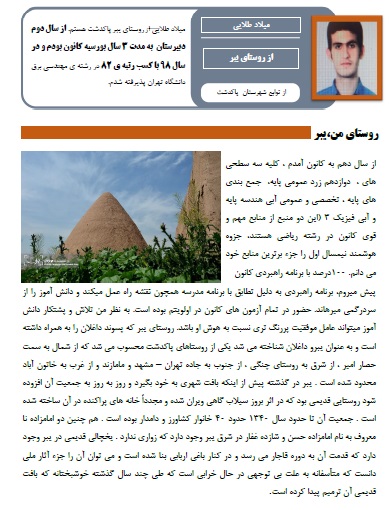 میلاد طلایی از روستای یبر پاکدشت هستم. از سال دوم