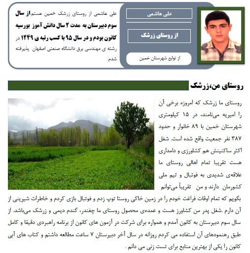 علی هاشمی از روستای زرشک خمین هستم.از سال