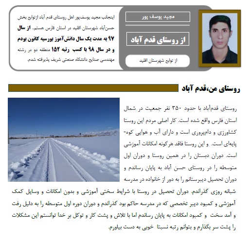 اینجانب مجید یوسفپور اهل روستای قدم آباد ازتوابع بخش