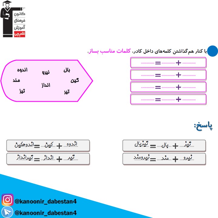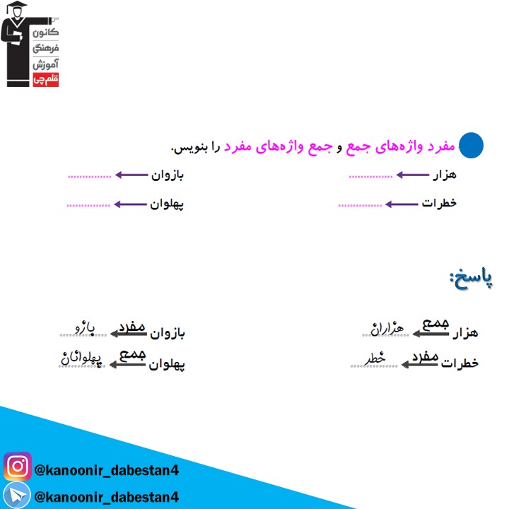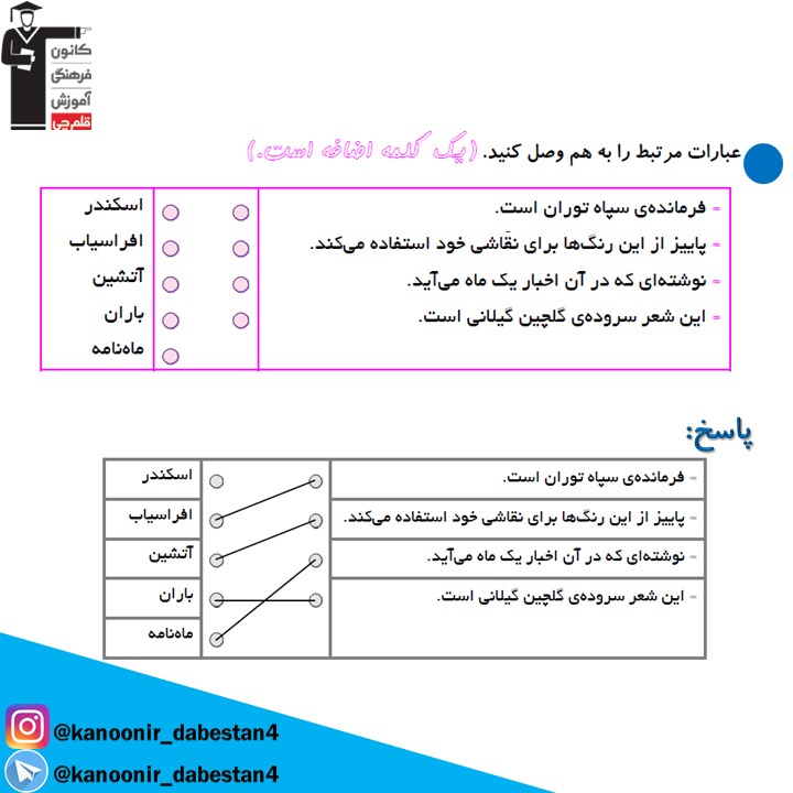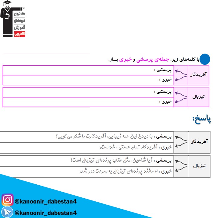 نمونه سوال تشریحی فارسی چهارم دبستان +پاسخ _ درس ششم