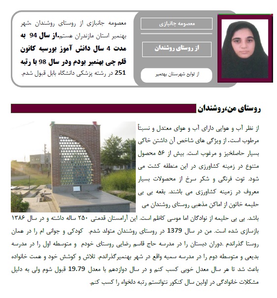 معصومه جانبازی: از روستای روشندان تا پزشکی دانشگاه بابل