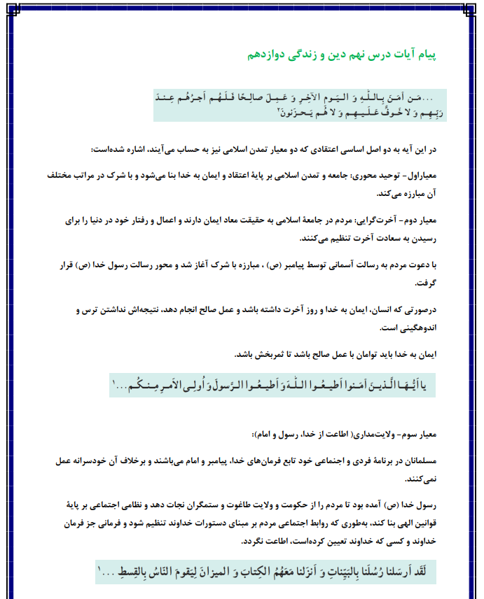 پیام آیات دین و زندگی از مباحث مهم برای پاسخگویی به سوالات دین و زندگی است و دانشآموزان باید بر پیام آیات و روابط آیات با یکدیگر و متن کتاب مسلط باشند. لذادر این قسمت پیام آیات درس نهم دین و زندگی دوازدهم منطبق با آزمون 23 اسفند را مشاهده میکنید.برای مشاهدهی ادامه مطلب فایل ضمیمه را دانلود کنید.