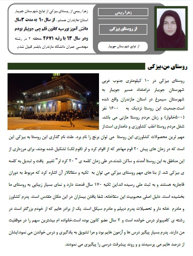 زهرا ربیعی بیزکی:از روستای بیزکی تامهندسی عمران بابلسر