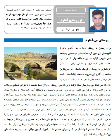 اینجانب حمید مقیمی از روستای آبگرم از توابع شهرستان