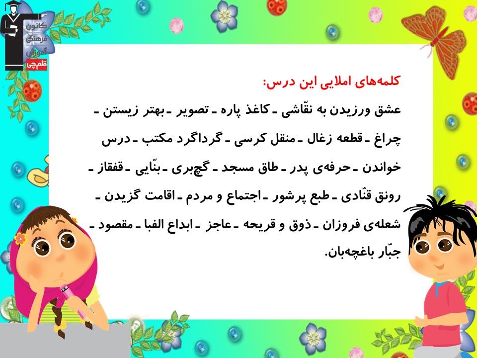 کلمههای مهم املایی درس دهم فارسی چهارم دبستان(باغچهی اطفال)