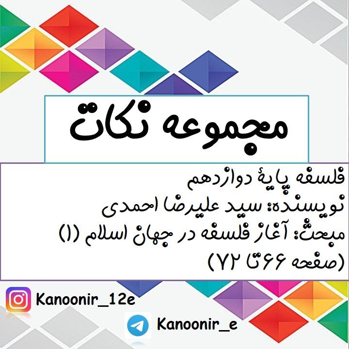 فلسفه دوازدهمدرس نهم: آغاز فلسفه در جهان اسلام (1)منطبق با آزمون 23 اسفندنویسنده: سید علیرضا احمدی- رتبه 41 کنکور سراسری - دانشجوی دانشگاه علوم قضایی